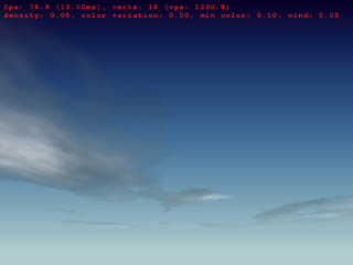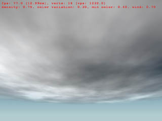 - Dynamically renders and animates layers of clouds using dynamically generated noise