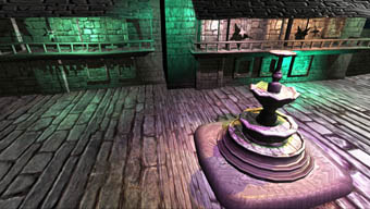 - texture coordinates are moved away from view direction to give a visual effect of per-pixel depth using a displacement map (matching the normal map used for the bumpmap lighting)