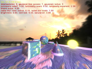 - uses floating-point render targets and textures, in addition to multiple render targets