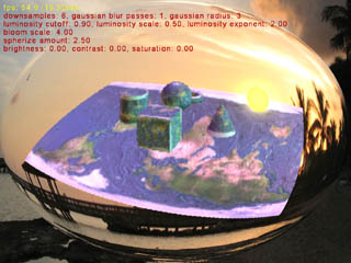 - per-pixel effects, including bumpmapped lighting, bumpy environment mapping, offset displacement mapping