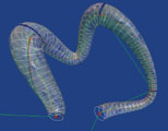 - surface defined by a displaced cylindrical shape following a cubic Cardinal spline as the center axis