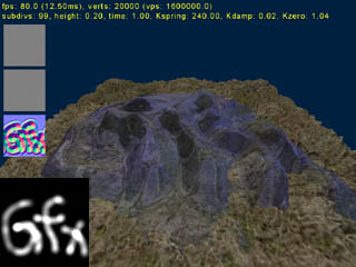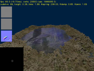 - Computes motion of water with forces applied to it as a spring based force simulation